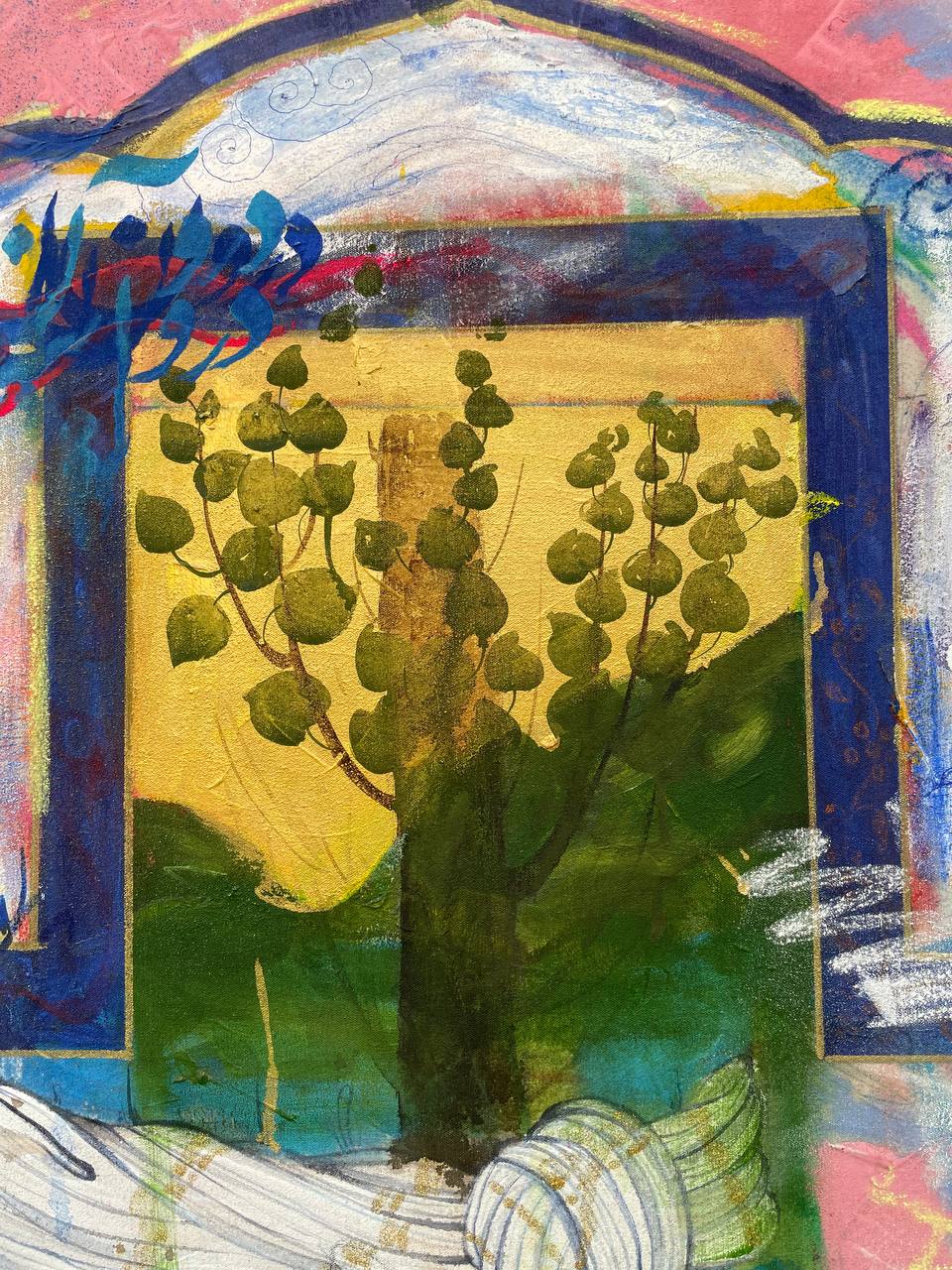 By leaving the traditional forms and breaking the old structures, we see a symbol of reproduction at the center of the frame…. The tree is a sign of growth and the green color shows the concept of life.
